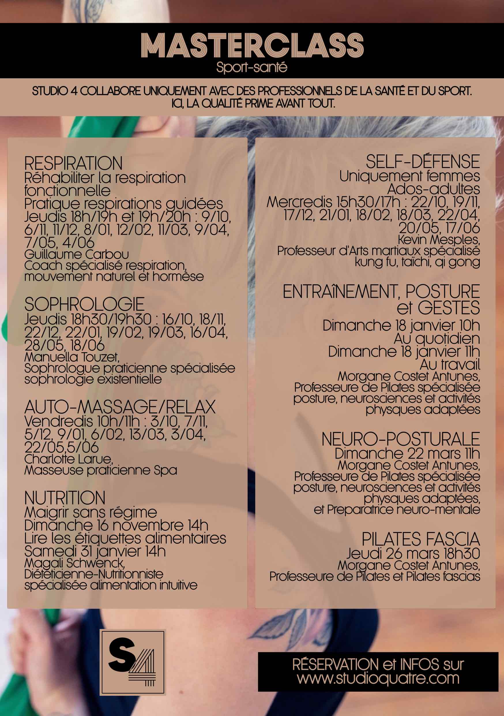Studio 4 a été créé exclusivement pour pratiquer dans le respect le plus total du corps et s'assure d'être ouvert à tous profils. Les professeurs actualisent constamment leurs formations et veillent à toujours être au courant des dernières études et nouveautés.